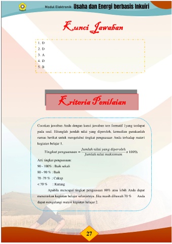 meneruskan kegiatan belajar selanjutnya. Jika masih dibawah 70 % Anda