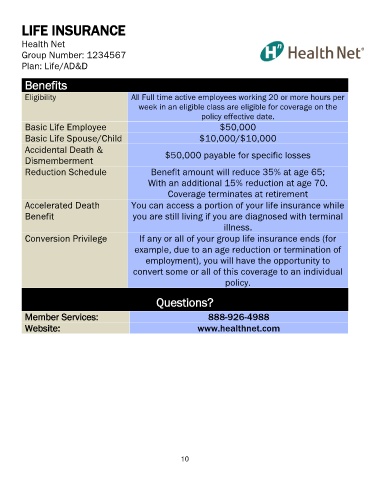 Reduction Schedule Benefit amount will reduce 35% at age 65;