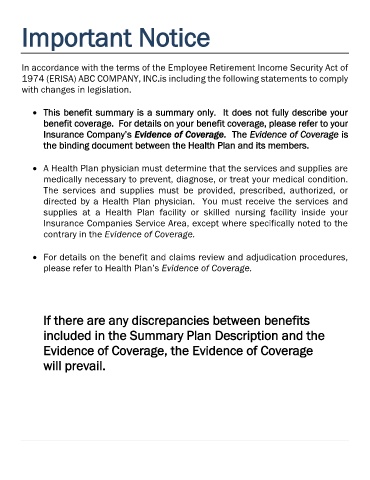 Insurance Company’s Evidence of Coverage. The Evidence of Coverage is