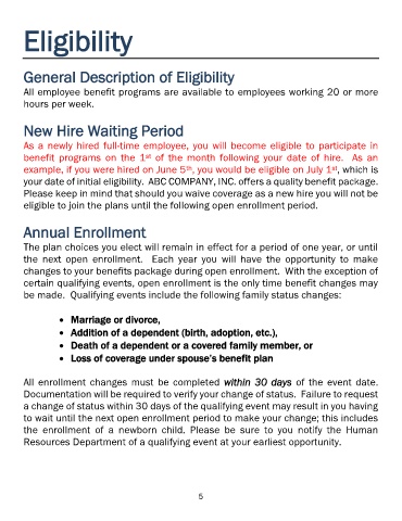 your date of initial eligibility.  ABC COMPANY, INC. offers a quality benefit package.