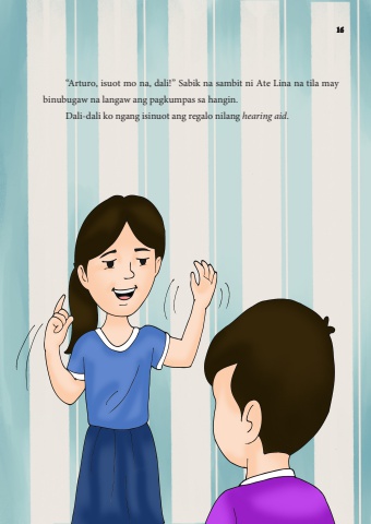 %u201cArturo, isuot mo na, dali!%u201d Sabik na sambit ni Ate Lina na tila may binubugaw na langaw ang pagkumpas sa hangin.Dali-dali ko ngang isinuot ang regalo nilang hearing aid.16