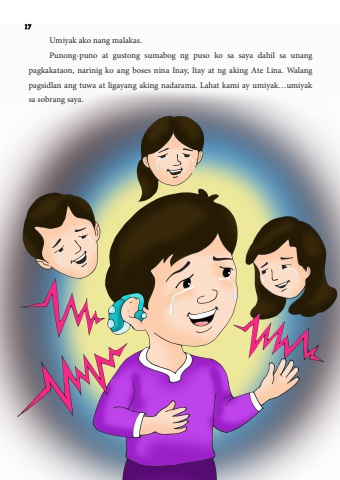 Umiyak ako nang malakas.Punong-puno at gustong sumabog ng puso ko sa saya dahil sa unang pagkakataon, narinig ko ang boses nina Inay, Itay at ng aking Ate Lina. Walang pagsidlan ang tuwa at ligayang aking nadarama. Lahat kami ay umiyak%u2026umiyak sa sobrang saya.17