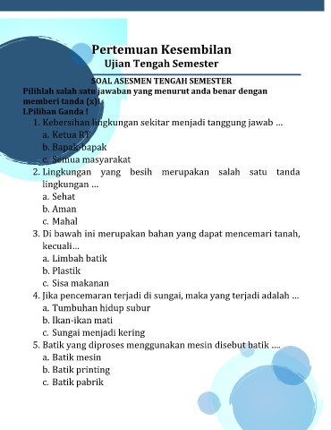 Pilihlah salah satu jawaban yang menurut anda benar dengan