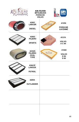 AIR FILTER MITSUBUSHI PORSCHE VOLVO 42801 41056 LANCER PORSCHE DIESEL CAYENNE 42803 41219 PAJERO VOLVO SPORTS X C 90 41000 4239/S PAJERO VOLVO OVAL S 60 TYPE S 80 42801P LANCER PETROL 42804 OUTLANDER 40