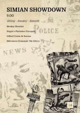 sIMIan showDown 9.00 Strong - Smokey - Smooth Monkey Shoulder Stiggin’s plantation pineapple Giffard Creme de Banane bittermens elemakule tiki bitters inspiration: Old Fashioned, Pendennis Club 1881 16