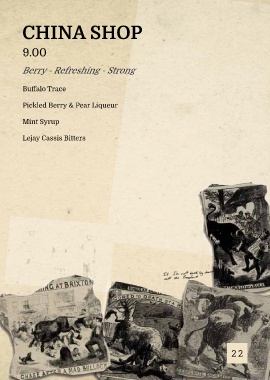 chIna shop 9.00 berry - refreshing - Strong Buffalo Trace Pickled Berry & Pear Liqueur Mint Syrup lejay cassis bitters inspiration: Julep, Jerry Thomas Bon Vivant’s Companion 1862 22