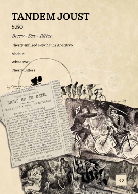 tanDeM Joust 8.50 berry - dry - bitter Cherry-Infused Peychauds Aperitivo Madeira white port cherry bitters inspiration: The Bicicletta Cocktail, Italy Pre 1900s 32