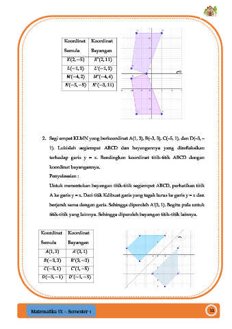 terhadap garis y = x. Bandingkan koordinat titik-titik ABCD dengan