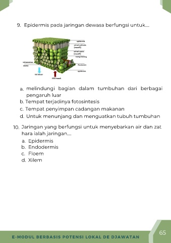 9. Epidermis pada jaringan dewasa berfungsi untuk....