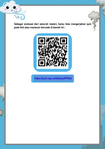 Sebagai evaluasi dari seluruh materi, kamu bisa mengerjakan quiz pada link atau menscan barcode di bawah ini : https://quiz.zep.us/id/play/3P1Ebx