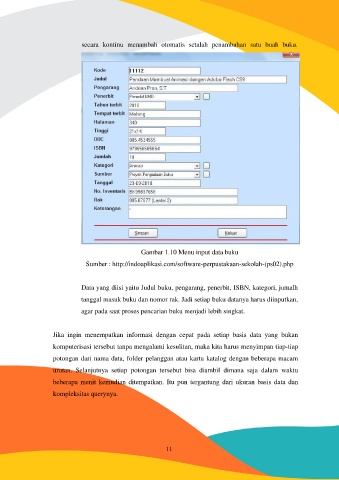 tanggal masuk buku dan nomor rak. Jadi setiap buku datanya harus diinputkan,