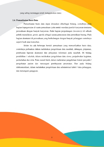 Pemanfaatan basis data dapat dirasakan diberbagai bidang, contohnya pada