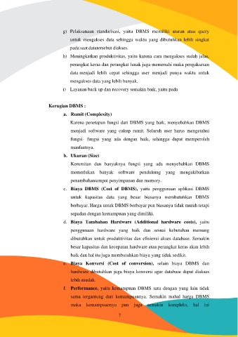 g) Pelaksanaan standarisasi, yaitu DBMS memiliki aturan atau query