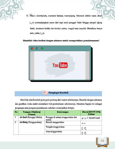 7) ْةَ لاَ طتسا (Istithalah), menurut bahasa; memanjang. Menurut istilah suara dhad
