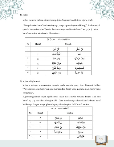 “Mengeluarkan huruf dari makhraj-nya, tanpa ngunnah (suara hidung)”. Idzhar terjadi