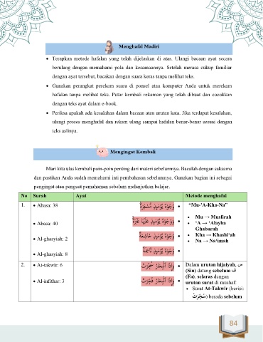 • Terapkan metode hafalan yang telah dijelaskan di atas. Ulangi bacaan ayat secara