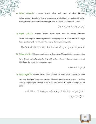 8) Ithbaq (قابطلإا), Ithbaq menurut bahasa ialah; melekat. Menurut istilah; membunyikan