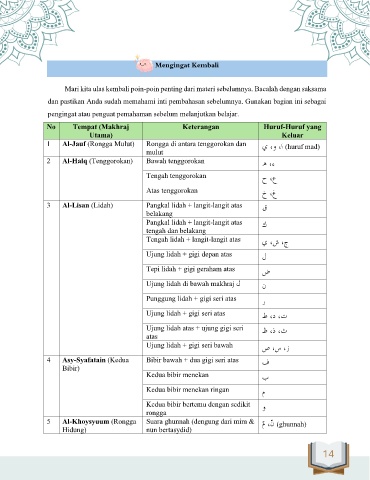 No Tempat (Makhraj Keterangan Huruf-Huruf yang