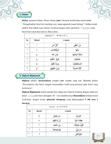 “Mengeluarkan huruf dari makhraj-nya, tanpa ngunnah (suara hidung)”. Idzhar terjadi
