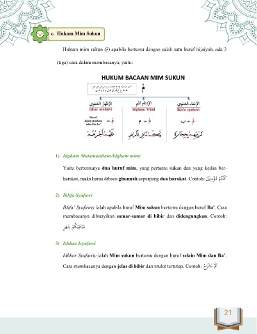 Hukum mim sukun (ْم) apabila bertemu dengan salah satu huruf hijaiyah, ada 3