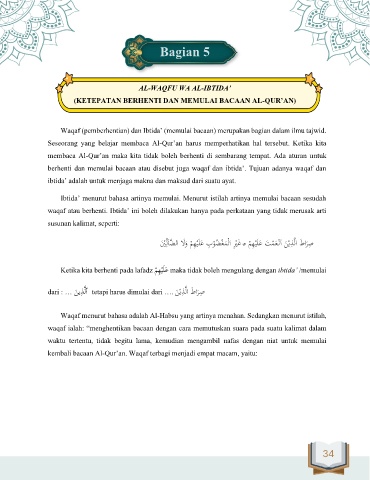 waqaf atau berhenti. Ibtida’ ini boleh dilakukan hanya pada perkataan yang tidak merusak arti