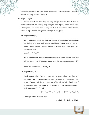 sebagai waqaf tamm ialah tanda waqaf lazim (م), tanda waqaf muthlaq (ط),