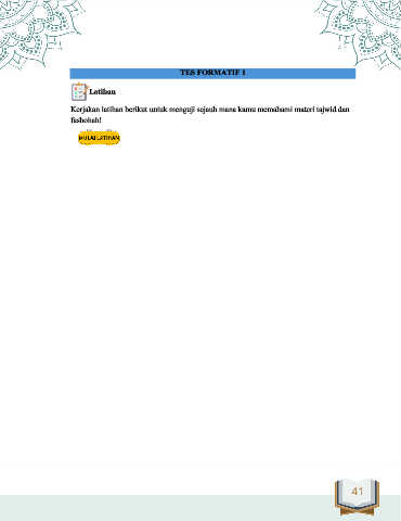 TES FORMATIF 1 Latihan Kerjakan latihan berikut untuk menguji sejauh mana kamu memahami materi tajwid dan fashohah! 41