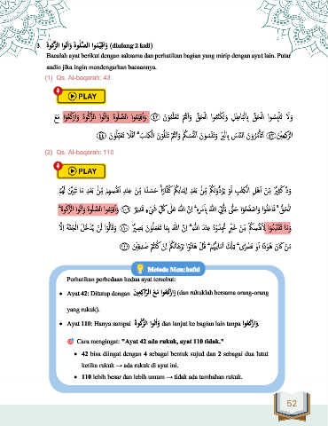• Ayat 110: Hanya sampai ٌَ ةوكزلاٌاوتٰ او dan lanjut ke bagian lain tanpa اوعَ كراو.