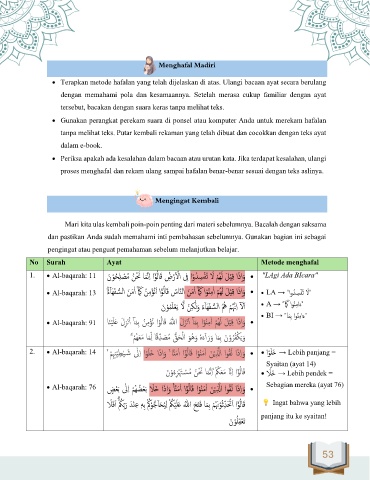 No Surah Ayat Metode menghafal