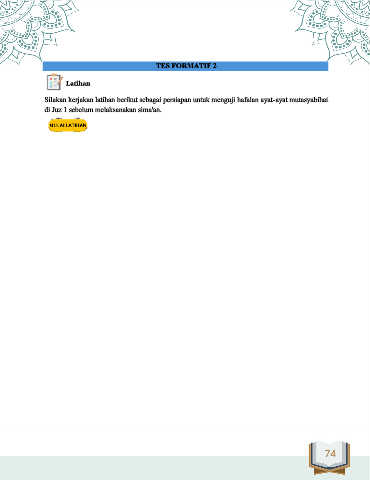 TES FORMATIF 2 Latihan Silakan kerjakan latihan berikut sebagai persiapan untuk menguji hafalan ayat-ayat mutasyabihat di Juz 1 sebelum melaksanakan sima'an. 74
