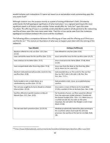 The following offers a comparison between the offering up of Isaac and the offering up of Christ as a