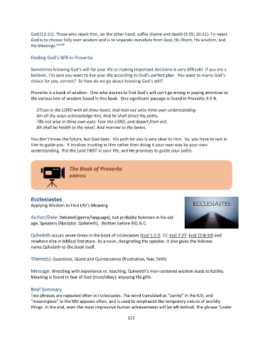 Message: Wrestling with experience vs. teaching, Qoheleth’s man-centered wisdom leads to futility.