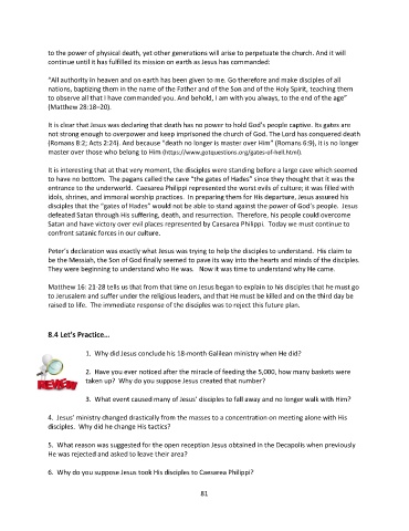 Satan and have victory over evil places represented by Caesarea Philippi. Today we must continue to