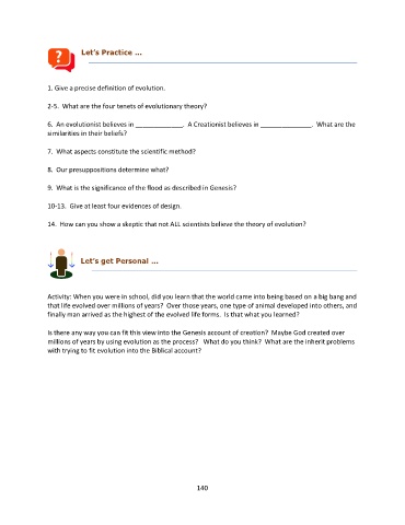 6. An evolutionist believes in _____________. A Creationist believes in ______________. What are the