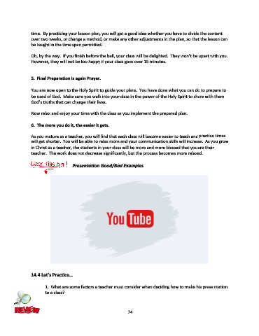 time. By practicing your lesson plan, you will get a good idea whether you have to divide the content
