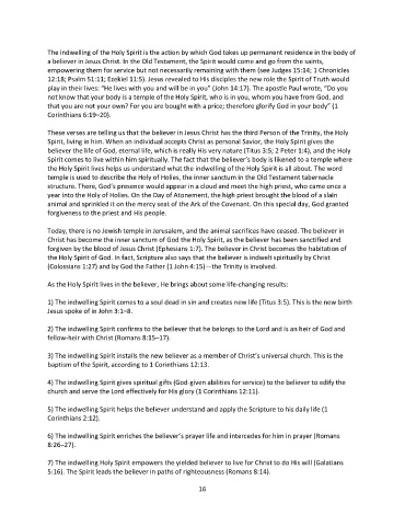 play in their lives: “He lives with you and will be in you” (John 14:17). The apostle Paul wrote, “Do you