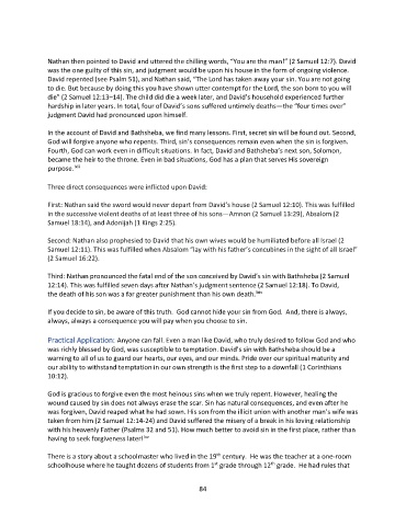 Third: Nathan pronounced the fatal end of the son conceived by David’s sin with Bathsheba (2 Samuel