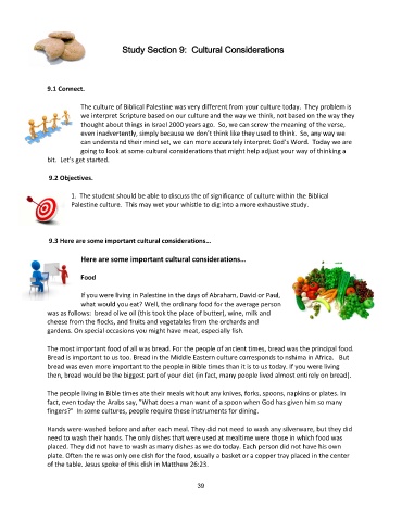 1. The student should be able to discuss the of significance of culture within the Biblical
