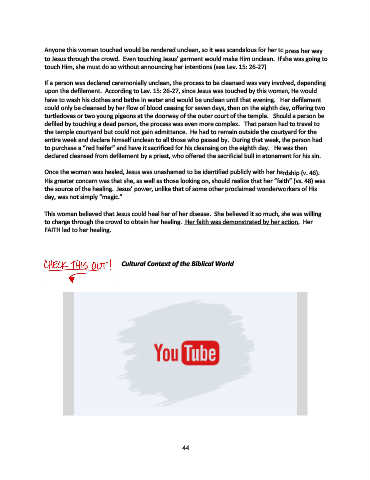 touch Him, she must do so without announcing her intentions (see Lev. 15: 26-27)