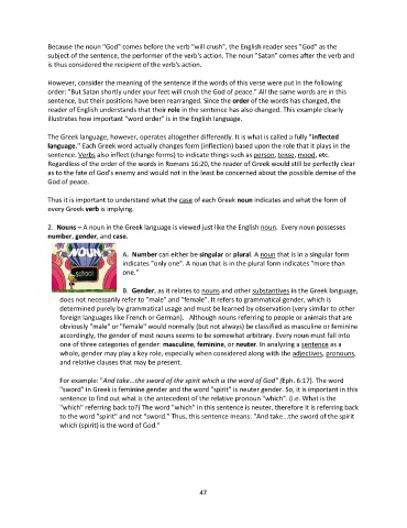 language." Each Greek word actually changes form (inflection) based upon the role that it plays in the