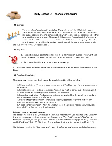 1. The student should be able to explain that the Bible inspiration is verbal (every word) and