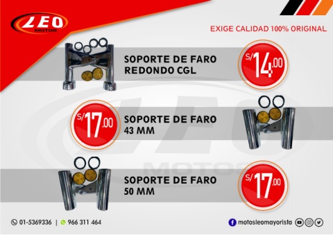 EXIGE CALIDAD 100% ORIGINAL SOPORTE DE FARO S/ 14 .00 REDONDO CGL 17 43 MM S/ SOPORTE DE FARO .00 SOPORTE DE FARO S/ 17 .00 50 MM 01-5369336 | 966 311 464 motosleomayorista