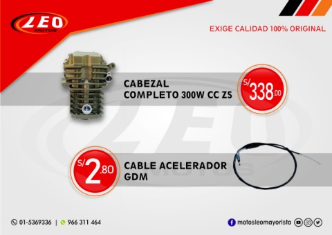 EXIGE CALIDAD 100% ORIGINAL CABEZAL S/ COMPLETO 300W CC ZS 338 .OO 2 GDM S/ CABLE ACELERADOR .8O 01-5369336 | 966 311 464 motosleomayorista