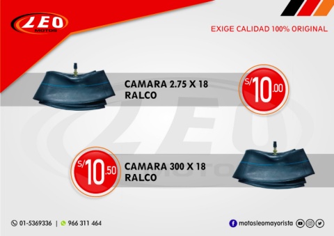 EXIGE CALIDAD 100% ORIGINAL CAMARA 2.75 X 18 S/ 10 .00 RALCO 10 .50 RALCO S/ CAMARA 300 X 18 01-5369336 | 966 311 464 motosleomayorista