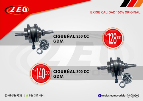 EXIGE CALIDAD 100% ORIGINAL S/ CIGUEÑAL 250 CC 128 .00 GDM 140 .00 CIGUEÑAL 300 CC S/ GDM 01-5369336 | 966 311 464 motosleomayorista