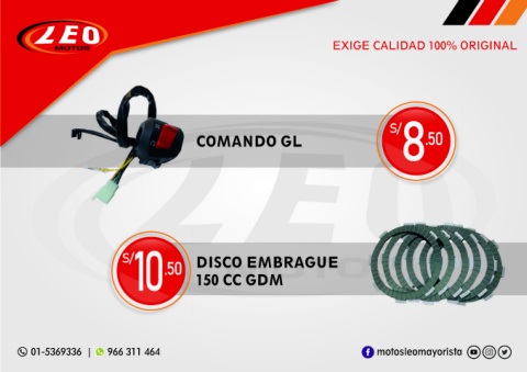 EXIGE CALIDAD 100% ORIGINAL S/ COMANDO GL 8 .50 10 .50 150 CC GDM S/ DISCO EMBRAGUE 01-5369336 | 966 311 464 motosleomayorista