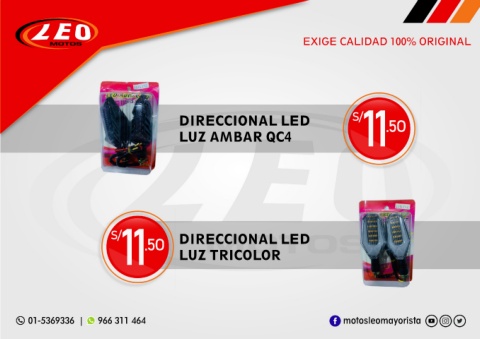 EXIGE CALIDAD 100% ORIGINAL DIRECCIONAL LED S/ 11 .5O LUZ AMBAR QC4 11 LUZ TRICOLOR S/ DIRECCIONAL LED .5O 01-5369336 | 966 311 464 motosleomayorista