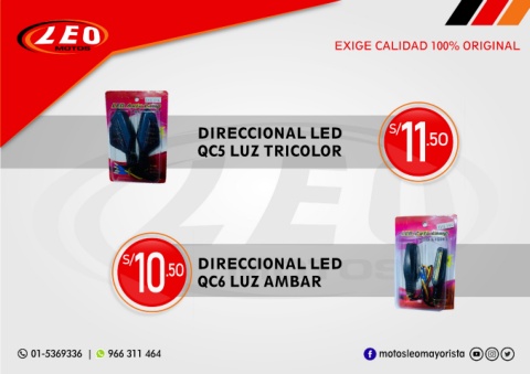 EXIGE CALIDAD 100% ORIGINAL DIRECCIONAL LED S/ 11 .5O QC5 LUZ TRICOLOR 10 .5O QC6 LUZ AMBAR S/ DIRECCIONAL LED 01-5369336 | 966 311 464 motosleomayorista