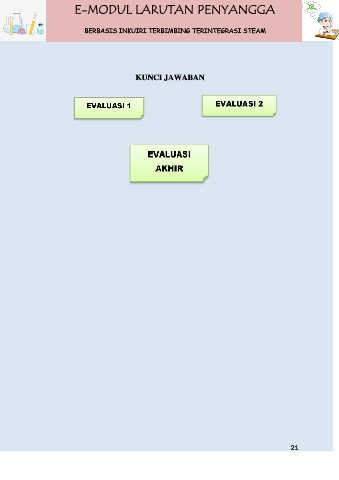 E-MODUL LARUTAN PENYANGGA BERBASIS INKUIRI TERBIMBING TERINTEGRASI STEAM KUNCI JAWABAN EVALUASI 1 EVALUASI 2 EVALUASI AKHIR 21