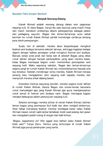 wayang kulit. Di desa Bagas, hanya dia satu-satunya yang masih hidup